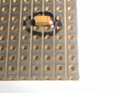 Une fois votre plaque (circuit imprimé) terminée, occupez-vous des pistes chargées d'accueillir le composant CMS. Dans notre cas il n'y aura que 2 ou 3 contacts. Donc etamez largement (une petite boule de soudure) une des pastilles du circuit. Saisissez vous alors de votre composant CMS, et tout en liquéfiant la boule de soudure du circuit, deposez le sur la plaque de maniere à ce que la patte correspondante aille se noyer (et donc se souder) dans la soudure en fusion. Vous composant est donc soudé et tenu par un de ses contacts. Alors maintenant soudez les autres contacts : une simple approche du fer et un peu de soudure suffisent. Attention à ne pas laisser trop longtemps de le fer en contact avec le composant, celui-ci serait detruit !